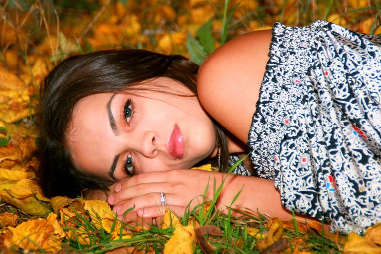 Keywords: girl leaves yellow autumn vegetation nature beauty