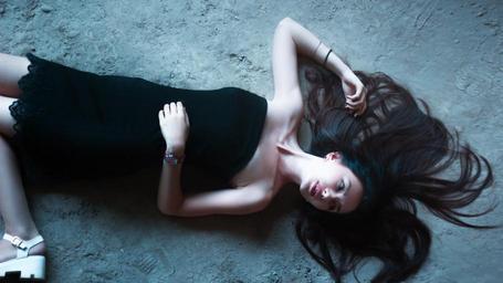 Keywords: girl lies girl in dress hair on the floor lips land background hand legs hairstyle makeup beautiful person view girl portrait model cosmetics style woman eyes beautiful girl