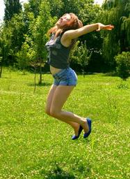 Keywords: girl long jump joy grass fun summer