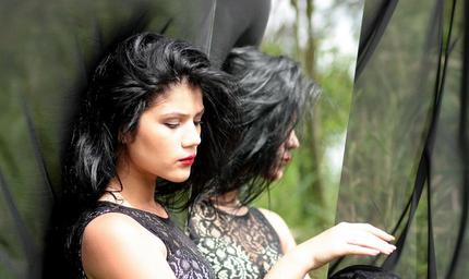 Keywords: girl mirror reflection brunette black beauty portrait