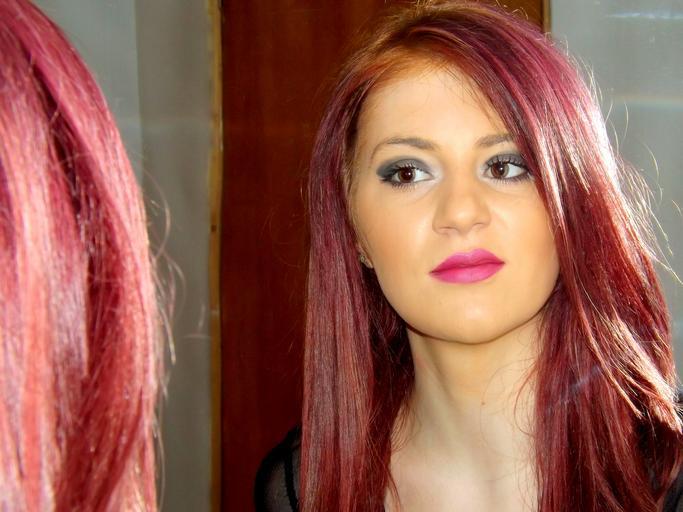 Keywords: girl mirror reflection portrait nice red lipstick makeup