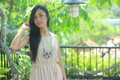 Keywords: girl nature smile young long hair outdoors summer dress jewelry