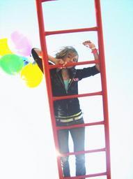 Keywords: girl on ladder balloons ladder climbing girl red colorful