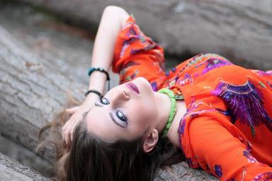 Keywords: girl orange wood timber blue eyes beauty loneliness
