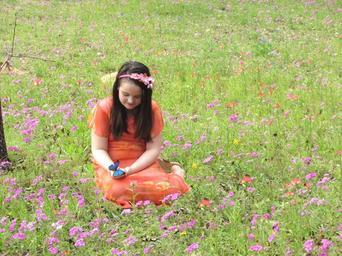 Keywords: girl person flowers butterfly spring childhood young people nature