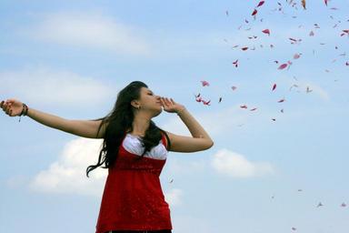 Keywords: girl petals flight red joy