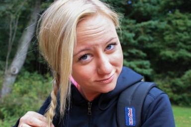 Keywords: girl portrait blonde blonde hair pretty face hiker hair braid nature adventure trees forest outdoor backpack