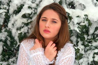Keywords: girl portrait blue eyes blonde snow winter