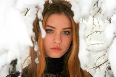 Keywords: girl portrait green eyes blonde snow winter