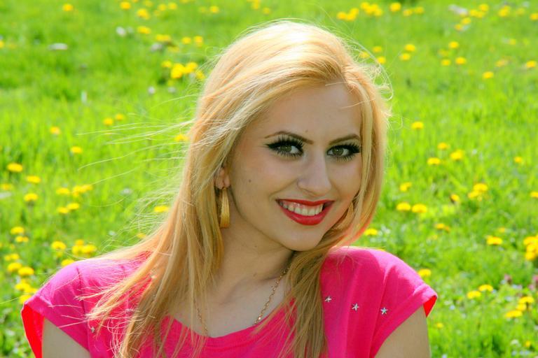Keywords: girl portrait pink flowers seduction smile beauty blonde