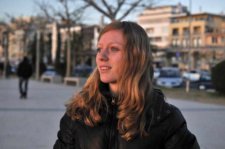 Keywords: girl rousse sunset light spain blue eyes venetian blond street
