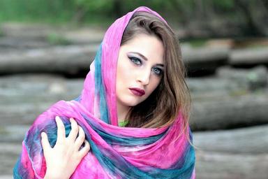 Keywords: girl scarf cover oriental blue eyes coloring beauty