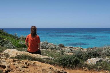 Keywords: girl seaside solitude only rear view solityde side horizon to admire