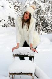 Keywords: girl snow chair white feerie winter blonde blue eyes