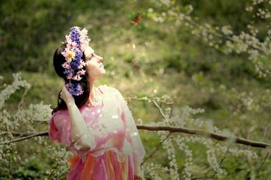 Keywords: girl spring flowers white wreath beauty trees