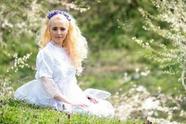 Keywords: girl spring flowers white blue eyes blonde wreath beauty trees