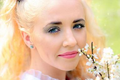 Keywords: girl spring flowers white blue eyes blonde beauty