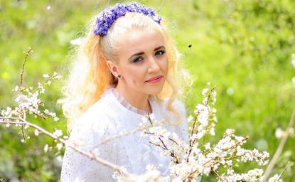 Keywords: girl spring flowers white blue eyes blonde wreath beauty