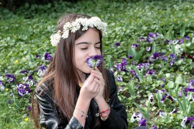 Keywords: girl spring wreath flowers beauty