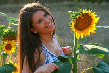 Keywords: girl sunflower smile field yellow