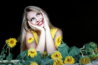 Keywords: girl sunflower yellow smile portrait