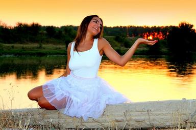 Keywords: girl sunset lake water reflection in the evening beauty white nature sky