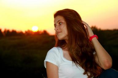 Keywords: girl sunset sun portrait beauty in the evening red shadow sky