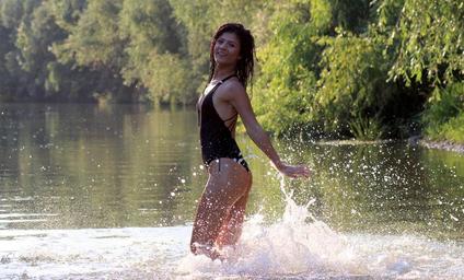 Keywords: girl swimsuit splash play water brunette sensual wild beauty seduction