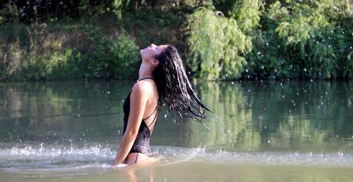 Keywords: girl swimsuit water brunette sensual wild beauty seduction