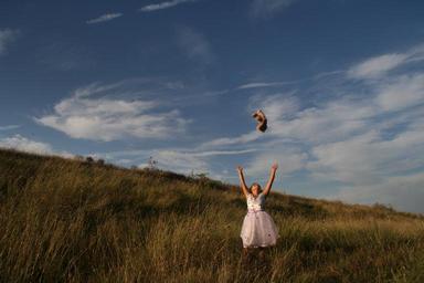 Keywords: girl tedddy bear teddy bear flight sky plain wreath smile child beauty innocence princess dress white