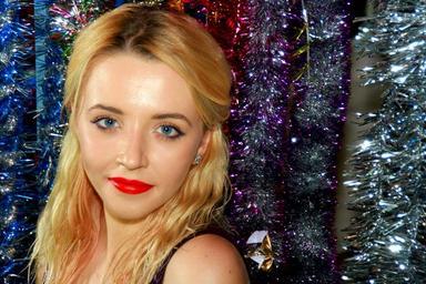 Keywords: girl tinsel holidays shine christmas blonde portrait
