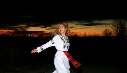 Keywords: girl traditional costume romania beauty in the evening sunset blonde
