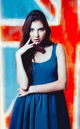 Keywords: girl wall lily dress blue blur fashion woman pretty