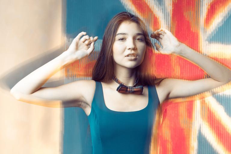 Keywords: girl wall lily dress blue blur fashion woman pretty