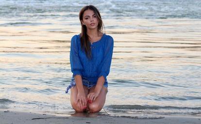 Keywords: girl water waves beauty sensual in the evening brunette
