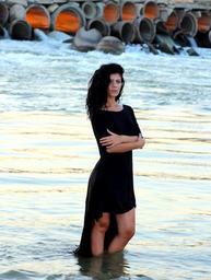 Keywords: girl water waves beauty sensual in the evening brunette