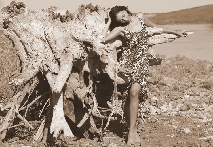 Keywords: girl wild roots water dress leopard beauty brown brunet summer