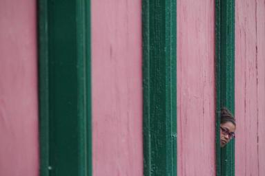 Keywords: girl window facade pink-green rausschauen human face pretty