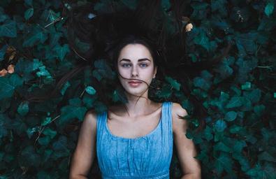 Keywords: girl woman female young hair ivy outdoors plant vegetation model fashion top blue pretty attractive cute portrait face expression skin person
