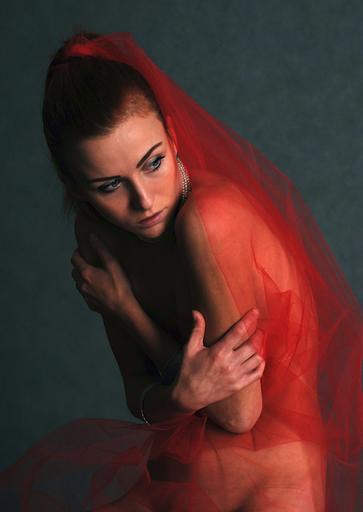 Keywords: girl woman portrait character the fear tulle hands meditation
