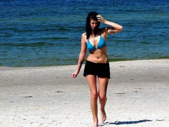 Keywords: girl young beach sea sand sunbath beauty woman happy summer person pretty attractive outdoor nature female lifestyle youth tattoo sunny leisure relaxation vacation women relax walk