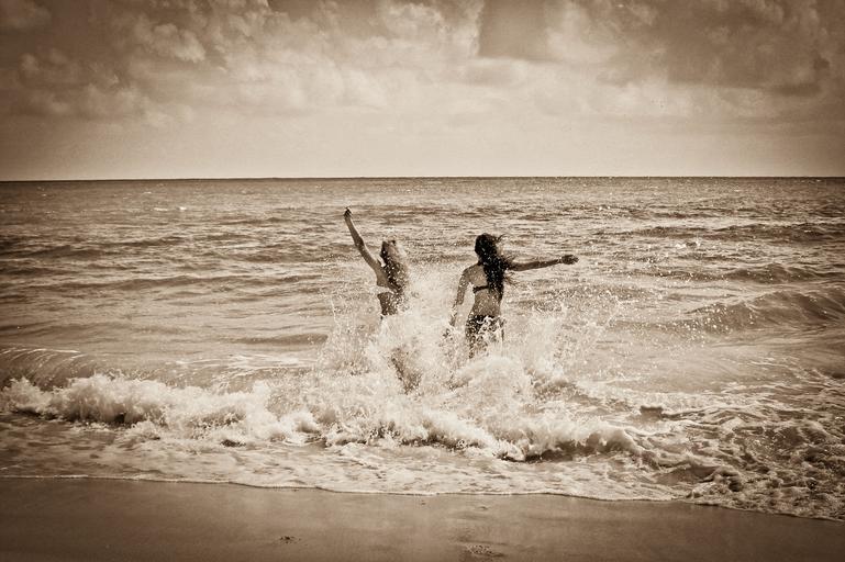 Keywords: girls beach ocean sea waves sand shore splash fun people vacation