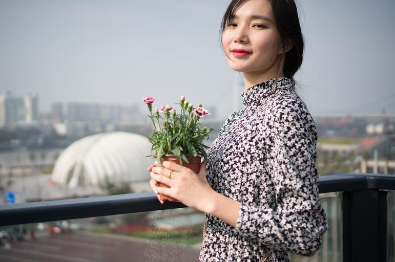 Keywords: girls female woman floral skirt dress asia people model urban background