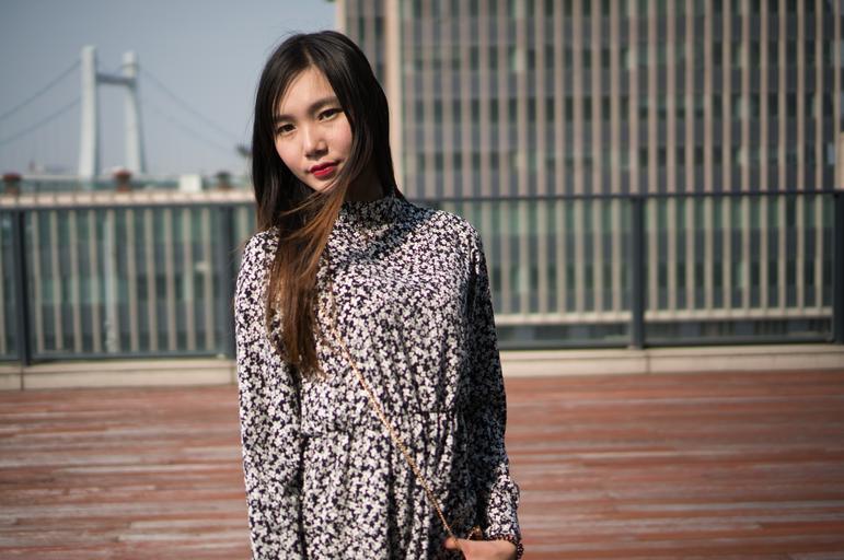 Keywords: girls female woman floral skirt dress asia people model urban background