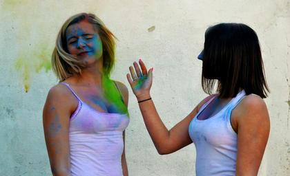 Keywords: girls friends colors holi powder slap