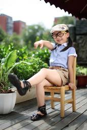 Keywords: girls photo the scenery child fashion model display chair sat outdoor glasses cap