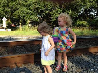 Keywords: girls travel train track sad wistful wish longing summer holiday traveler journey adventure sun child freedom destination outdoors childhood