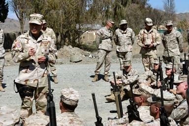 | Keywords: GIs outside Firebase Salerno.jpg FORWARD OPERATING BASE SALERNO Afghanistan March 10 2005 - Marines of Weapons Company and Headquarters and Service Company 3rd Battalion 3rd Marine Regiment listen to Maj Gen Jason Kamiya the Future Commanding General of the Combined Joint Task Force 76 speak during his visit to Forward Operating Base Salerno Afghanistan March 10 2005 3rd Battalion 3rd Marines is conducting security and stabilization operations in support of Operation Enduring Freedom U S Marine Corps photo by Cpl James L Yarboro http //www arcent army mil/cflcc_today/2005/march/mar08_17 asp 2005-03-10 U S Marine Corps photo by Cpl James L Yarboro PD-USGov-Military PD-USGov United States Marine Corps in Khost Province 3d Bn 3d Mar 2004-05 OEF March 2005 in Afghanistan Jason Kamiya Combined Joint Task Force 76 Forward Operating Base Salerno Khost Province in the War in Afghanistan 2001-present Operation Enduring Freedom |