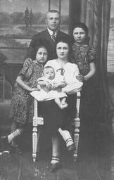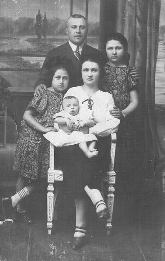 | Keywords: Gitlin Family in the mid-1920s.jpg he בני הזוג גיט ין וש ושת י דיה בסביבות 1925 א יהו גיט ין ~1882 1932 עומד צד בנותיו ימינו הבכורה אנה חנה אַנקָה ימי פּוֹ ָקֶביץ'; י ידת 1911 ו שמא ו אסתר סְטוּ ָה ימי הי דסהיי ; י ידת 1912 ; יושבת אשתו חוה אווה י ידת 1888 וע יה בן הזקוני משה מְיֶיטֶק <br> כ בני המשפחה פרט אביה נספו בשואה ראו דפי עד באתר יד וש http //db yadvashem org/names/nameDetails html itemId 1360103 language iw חוה ומשה http //db yadvashem org/names/nameDetails html itemId 386428 language iw אנה http //db yadvashem org/names/nameDetails html itemId 1976451 language iw אסתר en The Gitlin couple and their children c 1925 Eliyahu Gitlin ~1882 1932 standing next to his daughters to his right is the first-born daughter Anna Anka Polakiewicz; b 1911 and to his left Esther Stula Hildesheim; b 1912 ; sitting is his wife Ewa b 1888 and on her lap is the youngest son Moshe Mietek <br> All members of the family except for its father perished in the Holocaust see pages of testimony on Yad Vashem website http //db yadvashem org/names/nameDetails html itemId 1360103 language en Ewa http //db yadvashem org/names/nameDetails html itemId 386428 language en Anna http //db yadvashem org/names/nameDetails html itemId 1976451 language en Esther Circa 1925 en E Gitlin's niece Ruth Goldstein he אחייניתו ש א יהו גיט ין רות גו דשטיין Family album PD-old E Gitlin Black and white photographs of families |