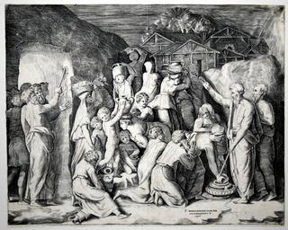 | Keywords: Giulio Bonasone - Miracle of the Manna.jpg Moses telling the Israelites to gather the manna and Moses striking the rock Mosè ordina agli ebrei di raccogliere la manna e Mosè fa scaturire l'acqua dalla roccia Engraving 270 x 342 mm Retrieved from http //www darsenarte com/cat/MiXXStampe htm darsenarte com Giulio Bonasone PD-old Giulio Bonasone Manna 1540s |